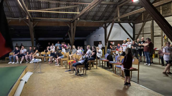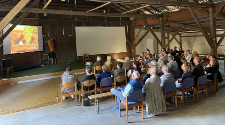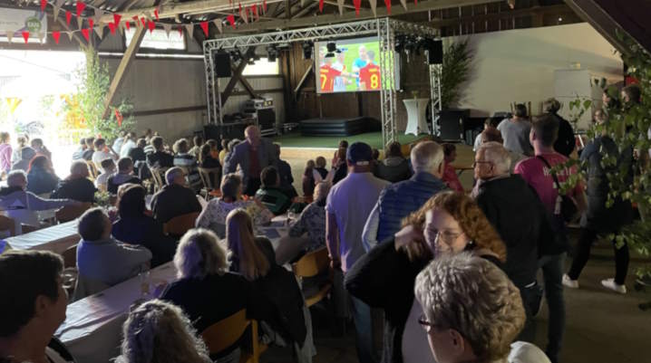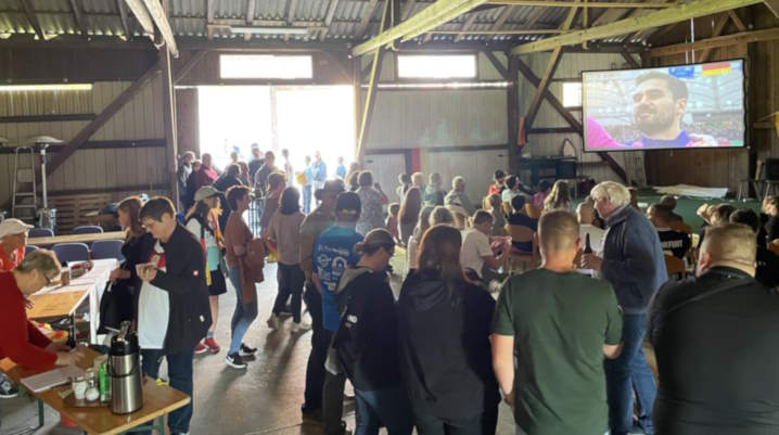 An diesem sommerlichen Abend stand das erste Achtelfinale der Fußball-Europameisterschaft gegen Dänemark an. Den 3:0 Sieg der deutschen Mannschaft verfolgten wieder viele Zuschauer in der Schützenhalle bei kühlen Getränken und frischer Bratwurst im Brötchen.