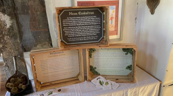Die Ausstellung "Wurzeln schlagen - Menschen und Pflanzen im Exil" wurde im Hugenottenhaus eröffnet. Sie zeigte den Einfluss der Hugenotten und Waldenser auf die Entwicklung der Kulturlandschaft und der Alltagskulturen in Küche, Ernährung, Garten und Landwirtschaft.