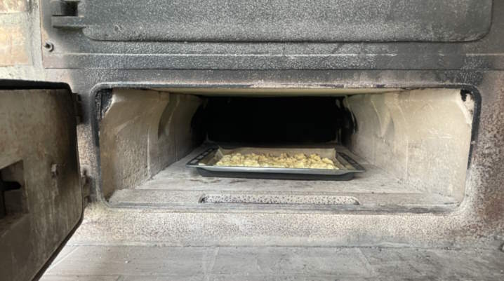 Im Rahmen der Ausstellung "Wurzeln schlagen - Menschen und Pflanzen im Exil" ludt der Heimatverein zum gemeinsamen Pizza-Essen in das Hugenottenhaus ein. Es wurde nordhessische Pizza serviert, frisch zubereitet vom Backteam im alten Ofen im Backhaus.